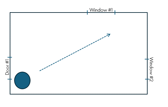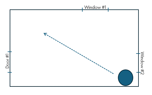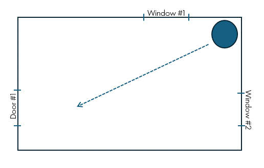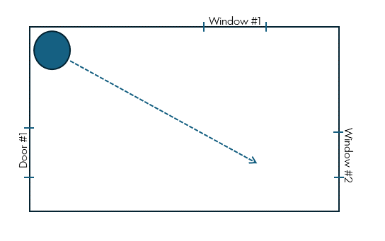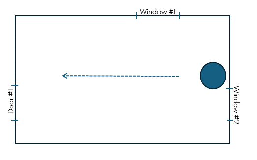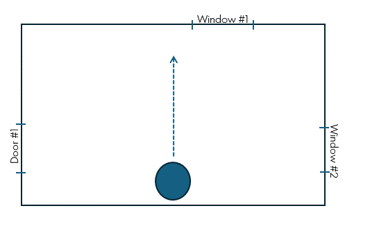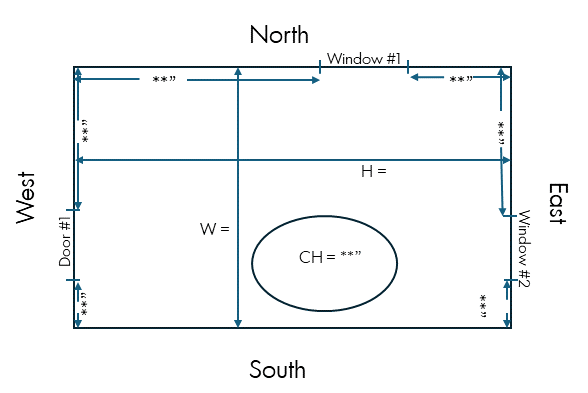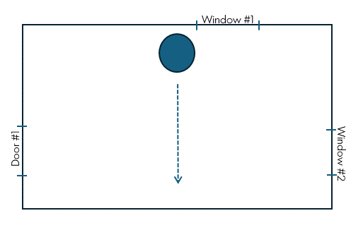 Grab a paper and pencil and draw the outline of the room. Mark the direction of each wall faces (This is important for understanding the natural light sources in the room).
