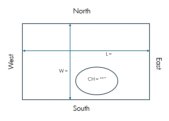 Measure the total width (W) and Length (L) and the ceiling height (CH) - you can measure in mm or inches, whichever you prefer.